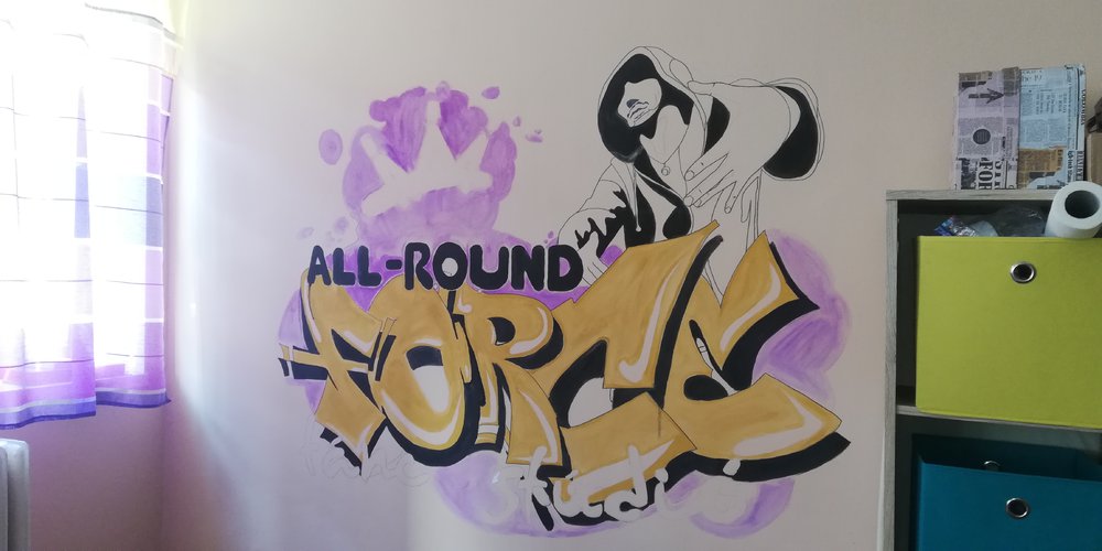 Idővel elkészült az első All-Round Force-os graffiti, majd a többi, bővitettük a tükörfalat, lett fotófal, és a kupáink is kaptak egy szép polcrendszert.