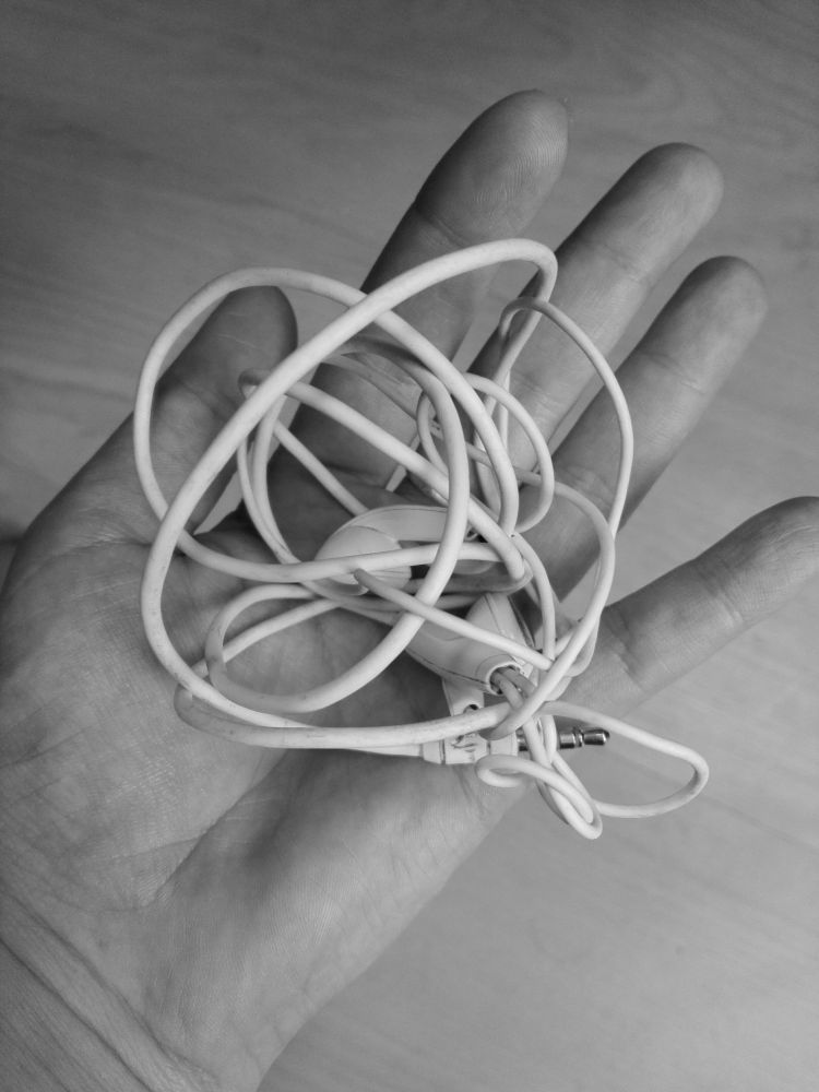 A buszon sokszor hallgatok zenét.Előveszem az előzőleg gondosan feltekert fülhallgatómat, és ezt látom: