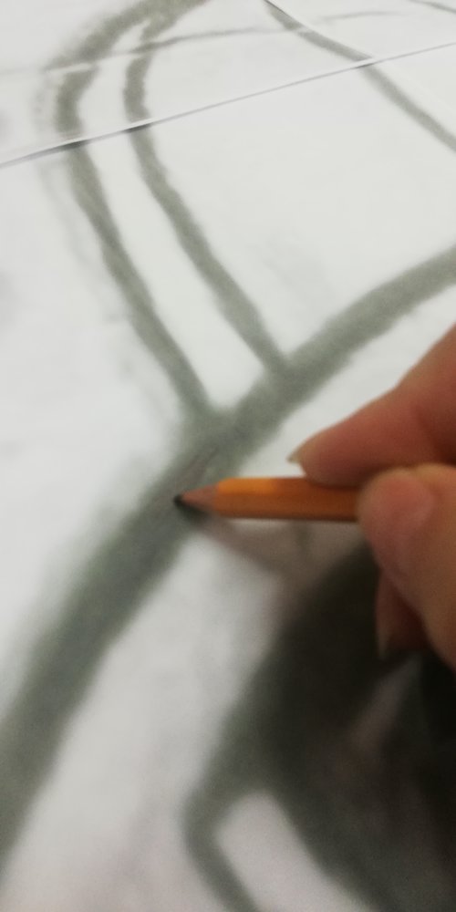 9. Egy kemény tárggyal erősen simítsd végig többször a rajzot, hogy a grafit áttapadjon a falra