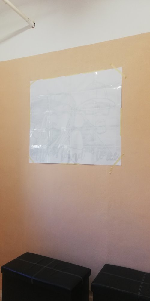 8. Maszkoló szalaggal ragaszd fel a falra a papírt